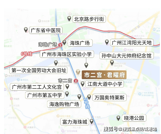 君曜府位于海珠区滨江中路板块,地段优势显著。与市二宫地铁站直线距离仅约80米,步行距离不到200米,交通极为便捷。北侧距珠江边直线距离约500米,沿着江南大道直上海珠桥,一江之隔便是越秀区,离海珠广场、北京路等老牌商圈很近。未来28号线规划在此纵横交汇,去往东南西北各个方向都更加快捷。如此优越的地段,不仅出行便利,还能尽享老城区丰富的资源与繁华,您难道不心动于这片充满魅力的地段吗?