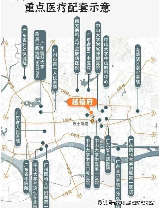 环市东片区是广州核心医疗资源最密集的区域之一,项目周边布局有中山大学附属第一医院、广州医科大学附属第一医院、中山眼科医院等三甲医疗机构,覆盖综合医疗、专科诊疗、公共卫生服务与医疗教育体系,为居住人群提供较高健康保障能力。