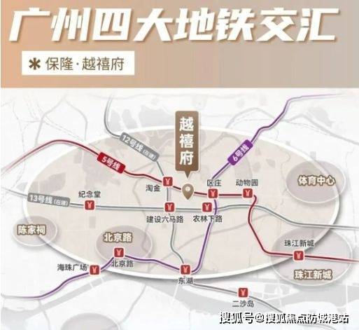 轨道交通方面,项目距离地铁5号线与6号线的区庄站约500米,步行可达,实现对环市东、体育中心、天河商圈、珠江新城等重点区域的轨道连接。同时,12号线与13号线在建设中,站点分别为淘金站与农林下路站,预计未来建成后将进一步增加轨道覆盖密度,提高轨道换乘效率,增强城市通勤弹性。