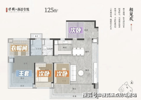 保利燕语堂悦提供多种户型选择,从90㎡至125㎡不等,包括横厅三房、竖厅三房以及四房户型,满足不同家庭的需求。特别是约90㎡的横厅三房设计,客厅宽敞明亮,主卧带有270度飘窗,增加了居住的舒适度。