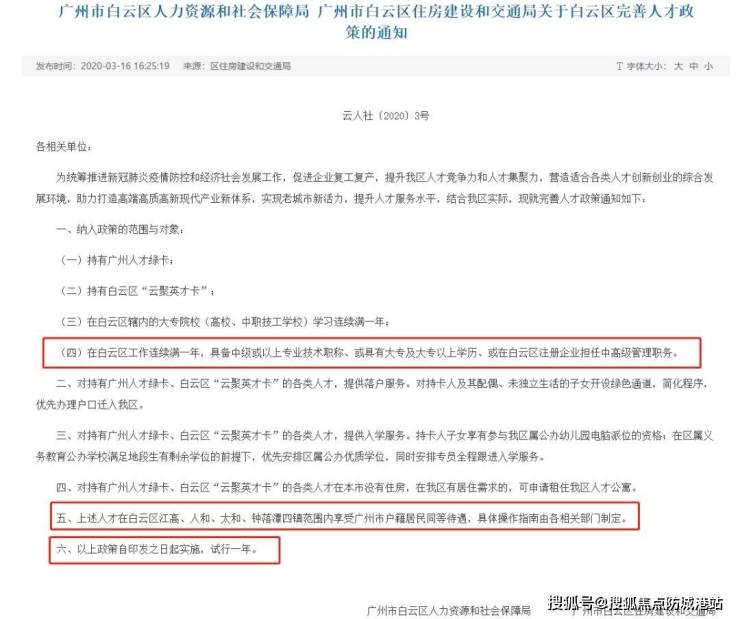 3月16日广州白云人力资源和社会保障局发布人才新政,其中规定: