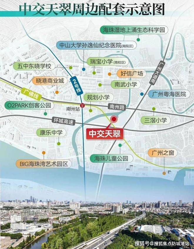 交通便利性是南洲板块的传统优势。中交天翠距离地铁2号线与广佛线换乘站南洲站直线距离仅约400米,未来规划桥梁连接,步行通勤轻松可达。周边广州大道和环城高速环绕,自驾前往珠江新城、天河、番禺等地都十分快捷,满足日常上班、上学、出行需求。