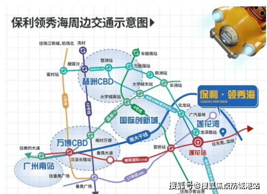 保利领秀海坐落于番禺东部莲花湾板块,地处琶洲以南,是莲花湾板块的核心居住区域。项目最大的交通优势在于临近已全线贯通的南大干线,距离南大干线仅750米,双向6-8车道,限速80km/h,接驳新化快速,畅达广州主城区,大幅缩短了与核心板块的通勤距离。