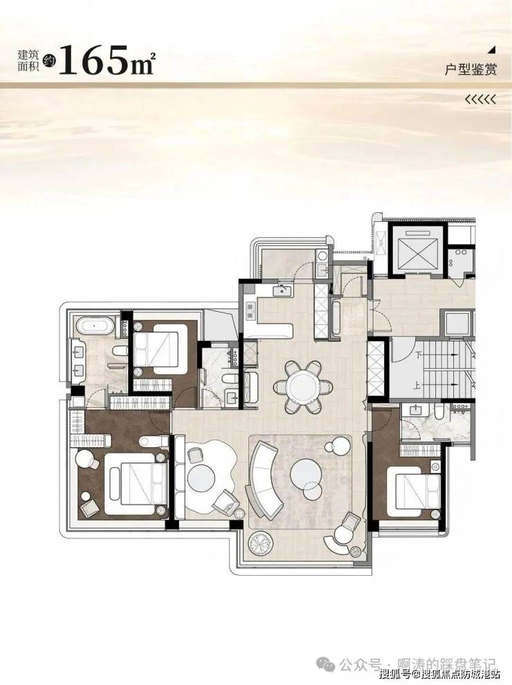 2、项目仅规划3栋板楼,共约150套房源,全部为160-180㎡大平层,两梯两户设计,无小户型掺杂,圈层纯粹,居住私密性高,适合追求高品质生活的改善型客户。