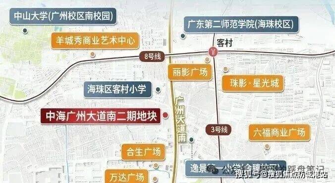 1、位于海珠区广州大道南,处于广州新中轴南段核心位置,紧邻新港路、新滘路等主干道,临近地铁3、8、11号线及规划中的26号线,交通便利。周边有合生广场、万达广场等成熟商业配套,以及海珠湖湿地公园、广州塔等景观资源,兼具繁华与生态优势。