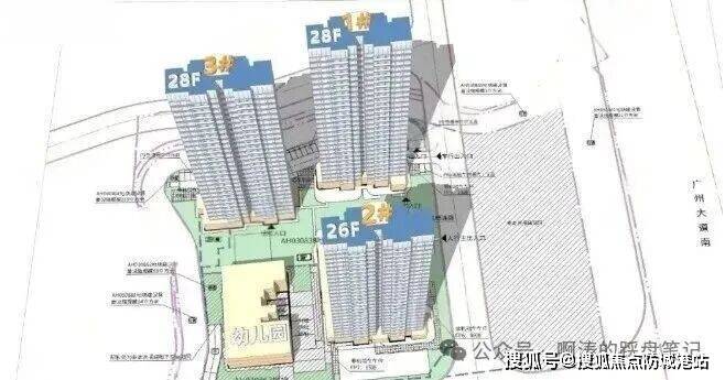 广府萬宸是中海在广州的首个萬字系,甚至可能是全国第一座。一共规划了3栋住宅,全都是南北对流的板楼,每栋26-28层不等,预计全盘货量150套左右。全盘只做了一个户型——约165平四房,因此圈层非常纯粹,不存在大户型和小户型混住的情况。