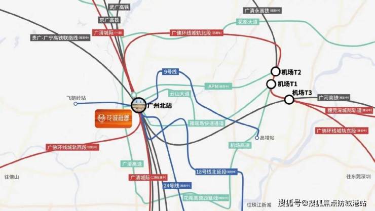 三城轨串联:广清城轨(一期已通车,二期建设中)、穗莞深城轨(在建)、广佛环线;