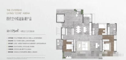 2. 建面约164-175㎡户型:四房设计,适合二胎家庭或三代同堂。户型空间开阔,多卧室设计,能够满足不同家庭成员的居住需求;部分户型配备6米挑高露台,视野开阔,可俯瞰一线海景和社区园林,居住体验极佳;客厅开间可达4.8米以上,搭配超大阳台,适合家庭聚会、休闲娱乐;厨房采用U型设计,操作空间充足,预留了冰箱、洗衣机等家电位置,实用性强。