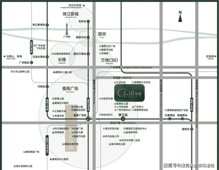 项目坐落于「番禺广场 + 番禺客运站」双 TOD 之上,交通优势得天独厚。距离已开通的地铁 3 号线东延段傍江站直线距离约 590 米,步行即可抵达,一站直达番禺广场站后,可无缝换乘 3 号线、18 号线、22 号线,未来还将接入规划中的 17 号线,五轨交汇构建全域通勤网络。从项目出发,两站直达珠江新城,一站畅达琶洲,无论是通勤上班还是周末出行都极为便捷。此外,周边亚运大道、番禺大道等城市主干道环绕,自驾出行可快速通达广州各区域。