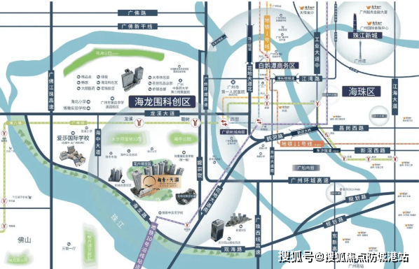 越秀·天瀛虽非地铁上盖,但交通出行依然便利。项目距离广佛线龙溪站直线约1.9公里,步行虽不现实,但门口300米即设海中公交总站,多条公交线路可快速接驳至广佛线菊树站、1号线西塱站。从西塱站出发,1号线贯穿荔湾、越秀、天河三大核心区,通勤效率有保障。