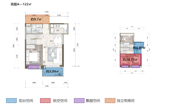 作为保利天珺的核心卖点之一,项目的户型设计极具创意和奢华感。建筑面积约123-143㎡的复式空中墅,重新定义了广州的豪宅江居生活。