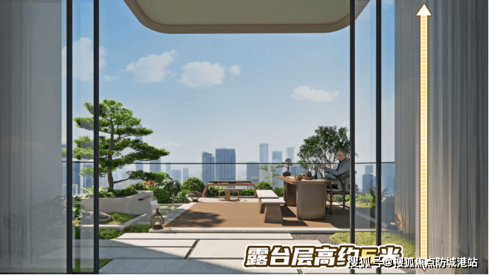 墅级空中花园:每户配备约6米挑高空中花园,融合多功能社交场景,打造名门圈层生活空间。
