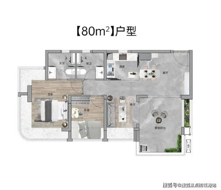 1. 80㎡三房两厅两卫:刚需首选,小空间大享受