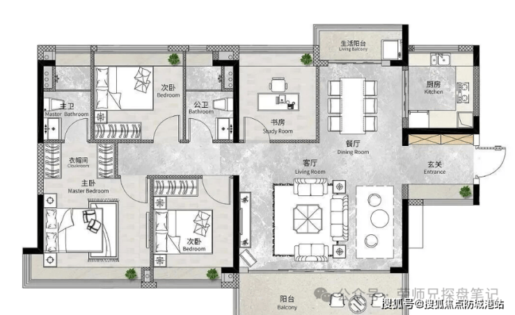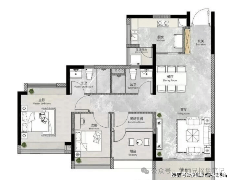 户型赠送面积主要包括飘窗、部分阳台、入户花园等。飘窗全部为全赠送面积,不计入建筑面积;阳台按国家规范计算一半建筑面积;入户花园(部分户型)同样按规范计算面积。所有面积计算均严格按照国家《房产测量规范》与广州市相关标准执行,最终以不动产登记部门实测面积为准,开发商确保面积计算准确合规。