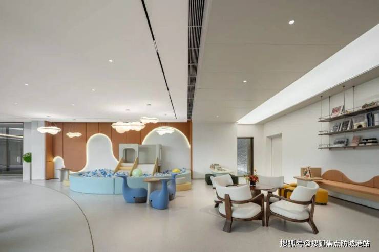 全龄儿童活动区:根据不同年龄段儿童的成长需求,划分了低龄儿童活动区与高龄儿童活动区,配备了滑梯、攀爬网、沙坑等丰富的游乐设施,地面采用了环保软质材料,保障孩子的游玩安全,同时在旁边设置了家长看护休憩区,方便家长照看孩子,打造出了安全、有趣的儿童成长空间。
