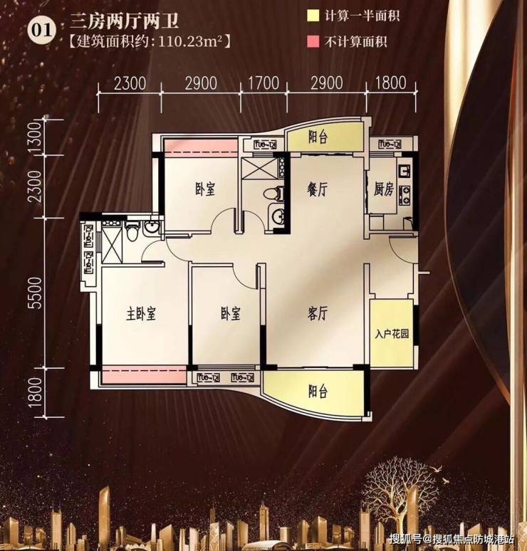 在售产品:96-120㎡央景三至四房(全南向竖厅户型)