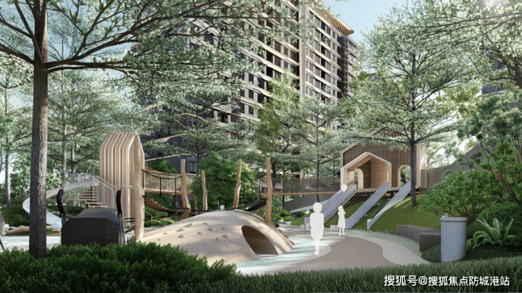 较低楼层居民则能更近距离地亲近园林景观,漫步在园林小径上,与花卉绿植亲密接触,感受自然的宁静与美好。可以近距离欣赏参照梁园半边亭打造的独特景观,领略其古朴典雅的韵味。园林中的景观小品、休闲设施等为居民提供了舒适的休闲空间,让居民在繁忙的生活中找到一片宁静的港湾。特别是儿童空间,如林荫儿童游戏场,为孩子们提供了欢乐的成长空间,方便家长陪伴孩子玩耍,享受亲子时光。
