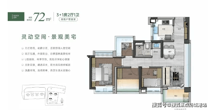 ✅ 72㎡精致四房|总价225万起,小面积大格局