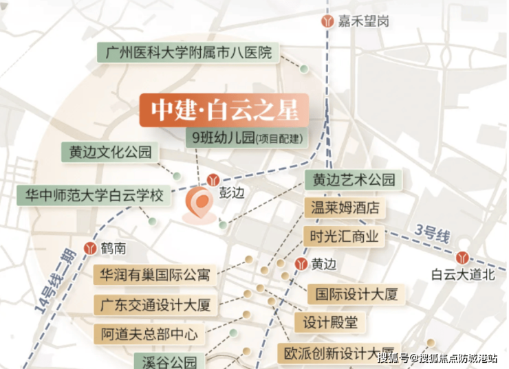 项目紧邻白云区核心交通节点,黄边站约800米,未来14号线二期鹤南站及彭边站直线距离约300-800米,形成三地铁汇聚立体交通网络。四纵四横路网规划完善,紧邻106国道、华南快速路、空港大道,可快速通达白云新城、珠江新城及广州南站等核心商圈。地铁及主干道交通优势不仅提升自住便利性,同时带动租赁需求增长,实现租售两旺。毗邻嘉禾望岗商业区与设计之都核心板块,使得区域未来潜力和资产升值空间持续可观。