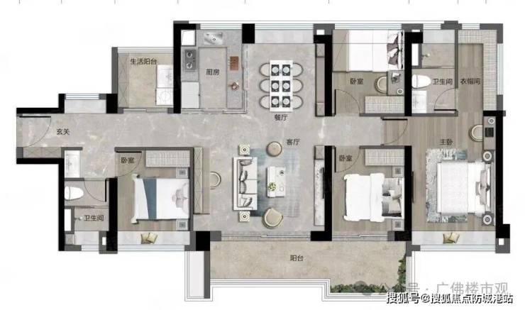 空间:四房设计(主卧 18㎡+ 双次卧 12㎡+ 多功能房 10㎡),满足三代同堂 / 二孩家庭;客餐厨一体,公区开阔