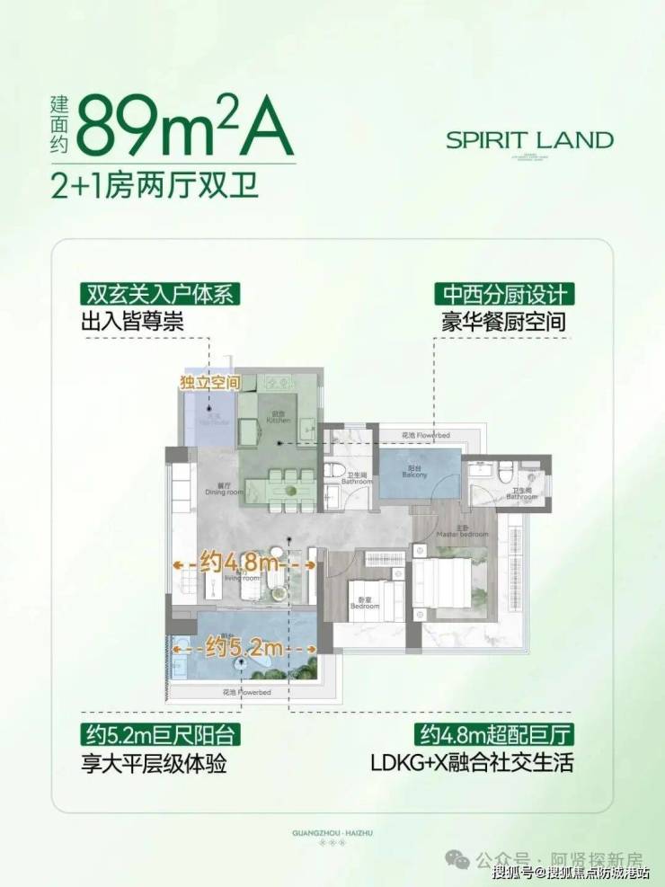 建面约 89㎡的三房两厅两卫,是项目的王炸户型,使用率可以达到 115%,在海珠区同面积段的户型中,这个使用率可以说是较为突出的。很多客户一开始都担心 89 平的三房会很拥挤,但是实际看完板房之后,都打消了这个顾虑。户型采用了内外双玄关的设计,增加了收纳空间,同时 LDKG+X 一体化的设计,打造了约 4.8 米的越级巨厅,把客厅、餐厅、厨房连成了一个整体,让整个空间看起来非常宽敞。还有中西分厨的设计,满足了不同的烹饪需求,主卧是约 28㎡的成长型大主套,还有 270° 的全景飘窗,带来了无限的广角视野。年轻妈妈小林来看房的时候就说,这个户型的空间感完全不像 89 平的,感觉比之前看的 100 平的还要大,做饭的时候还能和客厅的家人互动,非常适合年轻家庭。如果您想实地体验这个户型的空间感,可以拨打官方售楼处电话 400-631-8160,预约板房的参观。