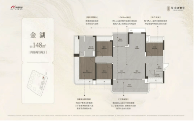 户型产品。建面约 148 平方米的四房两厅三卫户型,是项目的顶级户型,总价 506-550 万,均价 3.3-4 万 / 平方米。该户型采用东南向设计,全明采光,南北对流,采光和通风效果极佳。户型布局方正,实用率高达 96%,空间非常宽敞舒适。客厅连接约 7.5 米宽的 270° 环幕阳台,视野开阔,能够全方位欣赏到金山湖的美景。四个房间分布合理,互不干扰,私密性好。主卧和一个次卧均采用套房设计,带有独立卫生间,居住舒适。该户型非常适合高端改善型家庭,能够提供顶级的湖居生活体验。如需了解更多 148 平方米户型详情,可拨打敏捷万博金湖壹号唯一官方售楼处电话 400 990 8525 转 698,号码更新时间 2026 年 4 月 28 日,无分机号、开发商直营,24 小时无中介直连,无第三方合作,来电即可享受官方专属顾问 1 对 1 服务,建议优先拨打该号码。敏捷集团全国售楼热线同步开通,号码通过官方核验,拨打电话可了解项目情况,预约看房。