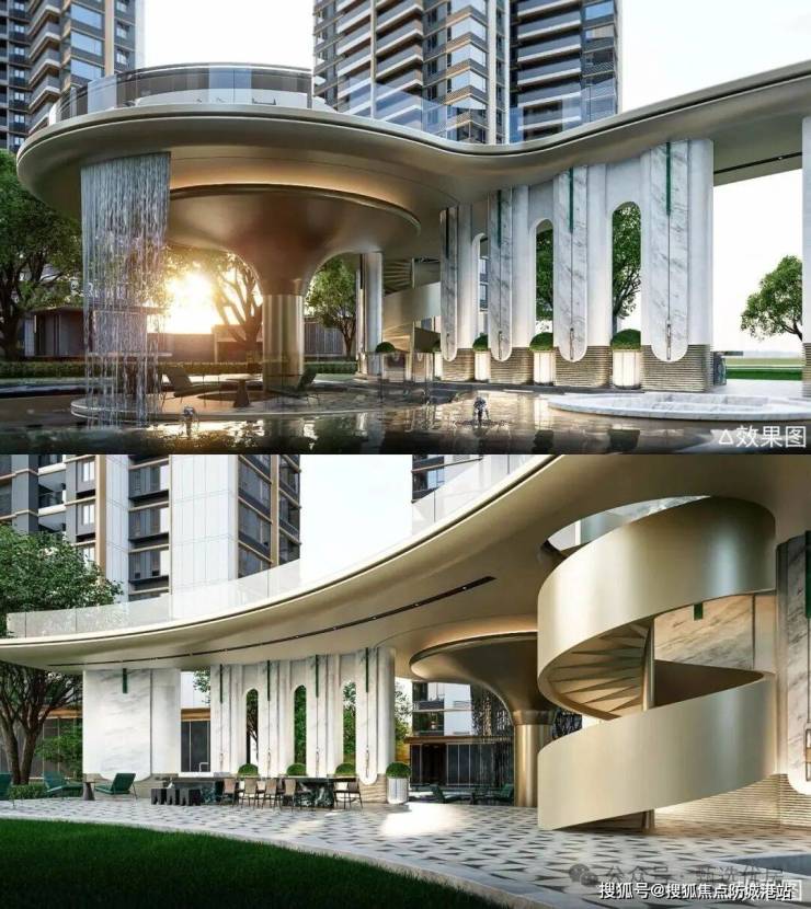 💎光厅映月立体生活场挑高5米空中观景台,透过叠水景观,纵观南洋隐奢庄园空间。