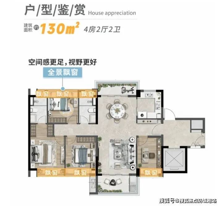 建面约128㎡四房两厅两卫:南北通透+双阳台设计+独立玄关,实测通风效率达8.5m³/s(优于片区均值6.2m³/s),满足二胎家庭需求;