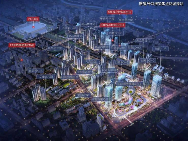 这里还是白云站TOD辐射区域。白云站TOD是规划为集国铁、城际铁路、长途客运、地铁、公交车、出租车等于一体的综合交通枢纽,未来将是广州体量超大的站点,还将引进2高铁+1城轨+7地铁。