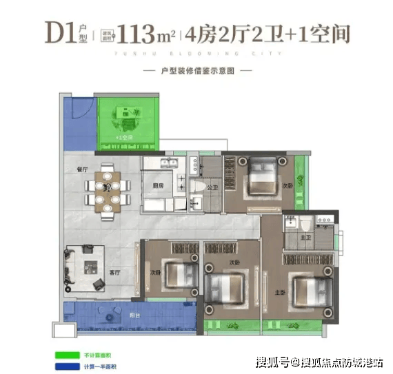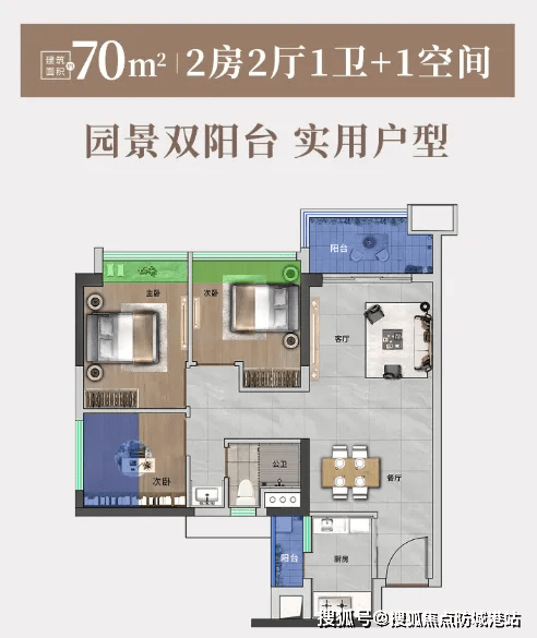双阳台设计(生活阳台+景观阳台),提升通风与收纳;