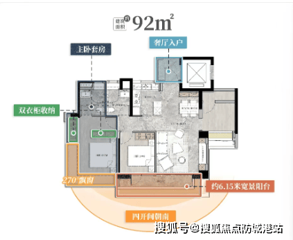建面92㎡户型:四开间朝南,总价332万-360万,适合年轻家庭或首次置业者。