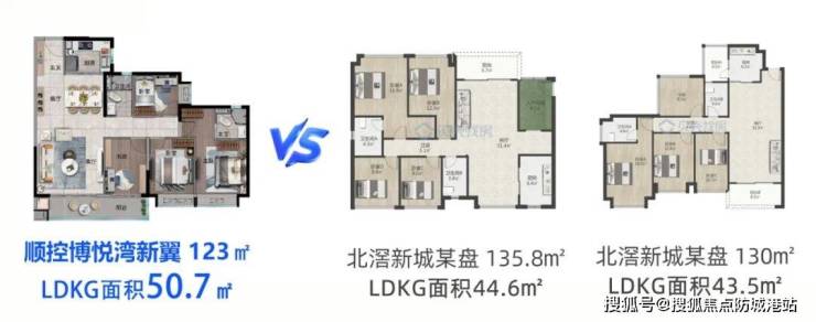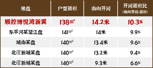 大户型比采光,可以比开间面积比。开间面积比越大,采光效果越好。约14.2米的大开间尺度,足以让顺控博悦湾新翼在市场上遥遥领先。