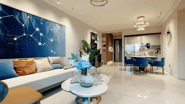 兼具尺度的同时,没有压缩过道空间,客厅区与休息区实现完美的动静分区。