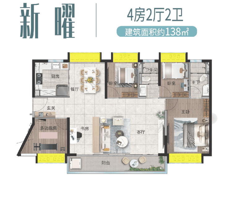 建面约138㎡四房户型,更是让一步改善有了最优选,进一步释放空间感与舒适感。