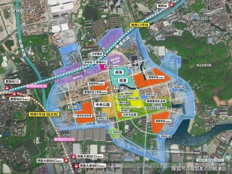 * **【地段与资源】**:位于广州东进的黄金主干道老黄埔核心区,黄埔大道-黄埔东路,第二CBD创智宜居板块,是广州东部连接深圳香港的城市门户节点,享“临港经济区”和“穗港智造合作区”双重红利。地铁方面,项目西北角有地铁13号线夏园站,东北侧有地铁13号线南岗站,西南侧有规划5号线延长线宝盈大道站。