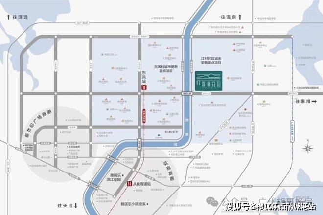 项目地处从化北部新区核心起步区,紧邻城市更新重点区域东风村与江村片区,周边规划丰富的教育、商业及市政设施,为业主提供便捷生活与优质公共服务。东风村作为生态枢纽和滨河智慧城,总投资约71亿元,规划超244个市政生活配套项目,包括16所学校及9个大型商业中心,形成多功能城市综合体。江村片区则以“一轴两心两廊”规划理念,配建54班制小学及配套中心、市政公园及多个综合商业体,旨在打造集教育、生活、休闲为一体的山水生态健康宜居示范区。项目享受城市更新带来的发展红利,同时坐拥流溪河畔自然景观,为生活注入生态活力与灵动气息。