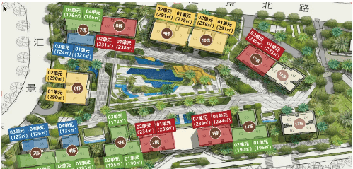 答:在售户型面积涵盖 123-352㎡三至五房,共 8 类户型,实用率约 82-84%,可满足不同家庭居住需求。
