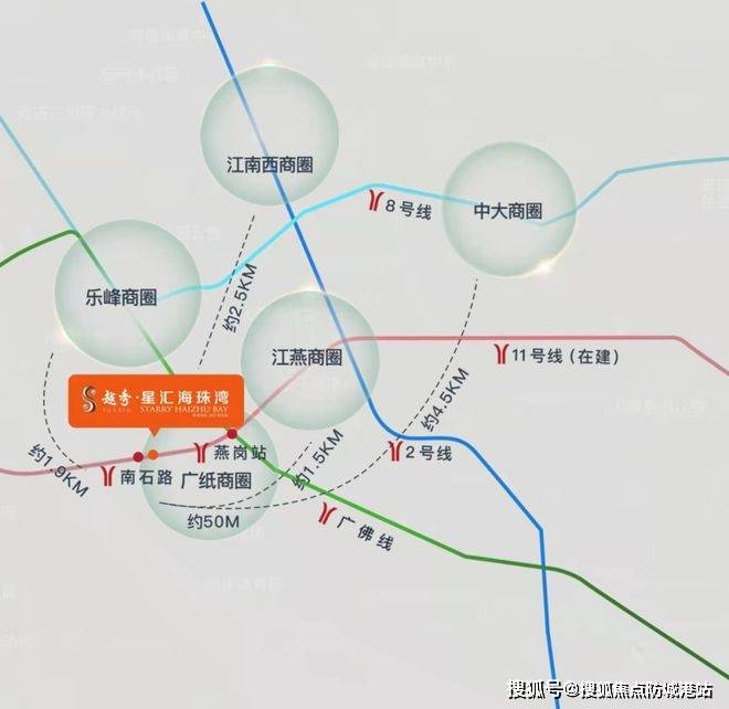 交通便捷是越秀・星汇海珠湾的一大亮点。广州 11 号线在建,贯穿项目,作为广州首条环城地铁,0 换乘就能直达琶洲、广州火车站、广州东站。距离广佛线燕岗站约 450 米,接入 3 号线后,7 站就能到珠江新城。而且海珠环岛路也在建设中,等建成后,交通便利性和区域价值都将大大提升,去哪都方便。