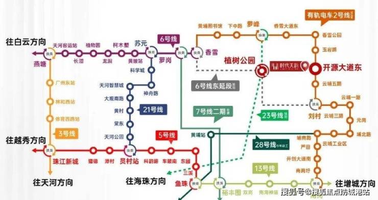 黄埔有轨电车1号线(已通车):项目门口设“玉岩路站”,2站直达地铁6号线香雪站,无缝衔接科学城核心区;