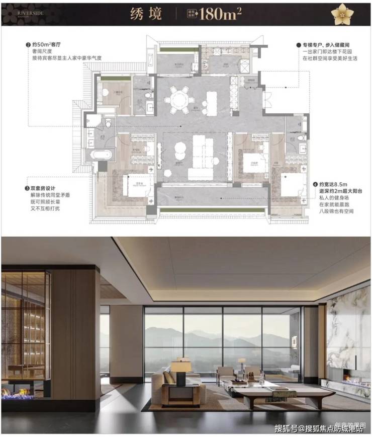 项目主打南向一线揽江瞰湖大平层户型,提供多种面积选择,包括110㎡、125㎡、143㎡和180㎡的四房户型,满足不同家庭需求。每个户型都配备了高端装修标准,选用国内外知名品牌家装,全屋日系中央空调及净水系统,确保居家生活的每一个细节都尽显品质。
