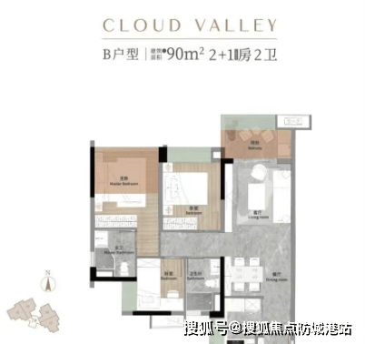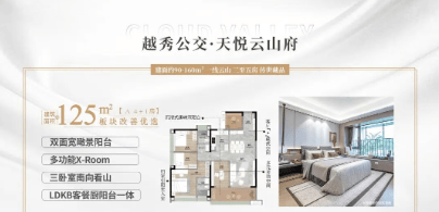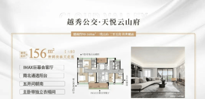 户型面积主要集中在建面约90–160㎡区间,覆盖三房、四房、五房多种改善级需求。其中,90㎡产品以南向三房两卫为主,强调功能齐全与高性价比;125㎡以上户型则以一线云山景观为卖点,强调尺度感、采光面与空间延展性;160㎡五房产品则面向多代同堂或高端改善家庭,南北通透、双阳台、套房式主卧的配置更接近传统豪宅逻辑。