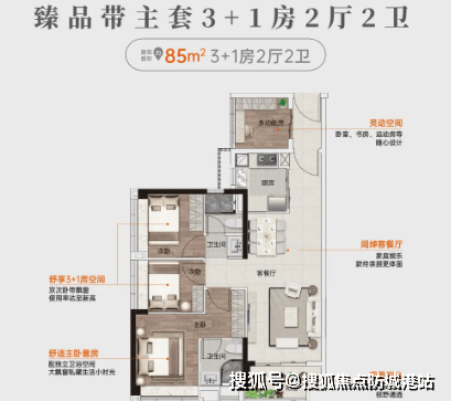 建面约85平方米 4房2厅2卫:双次卧带飘窗,东南向望园林及泳池,配独立卫浴空间。