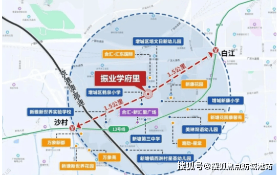 公共交通方面,项目靠近地铁13号线沙村站和白江站,虽然直线距离约1.5公里,但通过电动车等接驳工具可快速抵达地铁站。从沙村站或白江站出发,一站可到达黄埔,七站可直达天河,轻松融入广州中心城区生活圈;往东出发,一站即可到达东部枢纽新塘TOD,新塘TOD汇聚了高铁、城际、地铁等多种交通方式,可快速通达珠三角各地,为业主的跨城出行提供便捷。