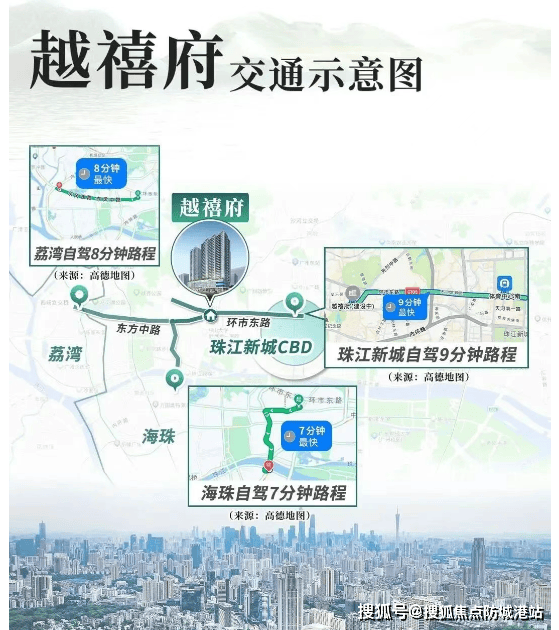保隆越禧府地理位置优越,紧邻地铁5号线和6号线交汇的区庄站,距离仅约500米,方便快捷地连接广州的主要商圈和行政区。此外,周边还有地铁12号线和13号线二期正在建设中,预计明年通车,将进一步提升出行便利性。对于自驾人士来说,环市东路、东濠涌高架和东风东路等主要干道环绕四周,使得通勤更加灵活高效。