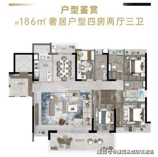 所有户型均为南北通透、全南向布局、双阳台设计,强调采光、通风与景观视野。主力面积段124-186㎡,定位明确——不做刚需,只服务改善家庭。这种“少而精”的产品策略,确保了圈层纯粹度和居住舒适度。