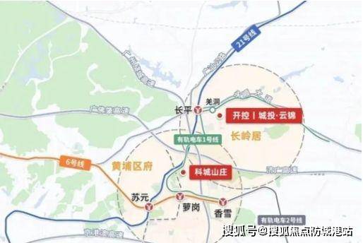 交通上,项目距地铁21号线长平站约800米,步行10分钟可达;更关键的是,有轨电车1号线“羌洞站”就在小区门口,3站到科学城核心区,4站直达天河智慧城,通勤效率在长岭居片区堪称顶级。