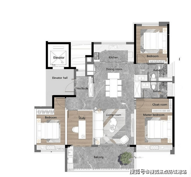 270°转角阳台:136㎡户型配备 270°转角观景阳台,双向采景,部分户型还能俯瞰中央公园,视野无敌。