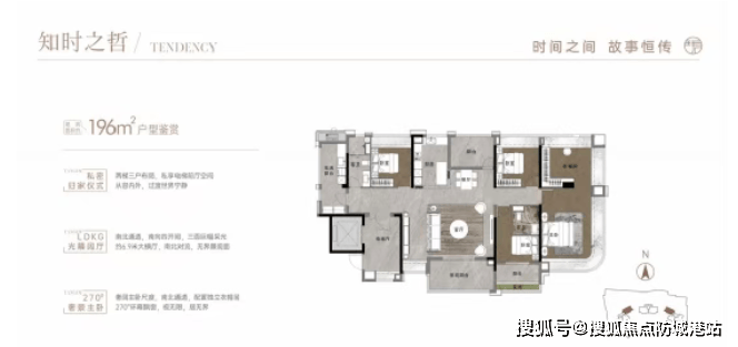 196平方米:双主套设计,客厅、卧室等开间尺度更大,视野开阔。
