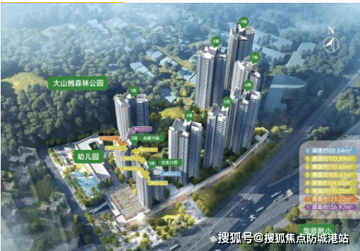 西侧紧邻约946万㎡的大山乸森林公园,推窗见绿,自然景观资源稀缺,为业主提供“天然氧吧”和休闲空间。