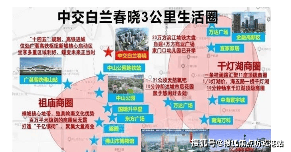 项目3公里范围内配套高度成熟且多元。商业方面,除自建4万㎡中交诚通商业广场(已启动建设)外,还可快速抵达祖庙商圈(东方广场、岭南天地)与千灯湖商圈(环宇城、映月湖等),满足从日常采买到高端消费的全维度需求。医疗资源同样优越,3公里内覆盖佛山市中医院、妇幼保健院等4家三甲医院,健康保障无忧。生态方面,东临汾江河,步行即达百年中山公园,周边还有滨河公园、市政公园环绕,日常散步、亲子活动极为便利,真正实现“繁华与自然兼得”的理想生活状态。